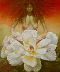 2005Aan haar oorsprong en verbondenheid met de roos, ontleent de vrouw schoonheid en kracht. Van het origineel is een hoogwaardige Giclée te bestellen voor € 400,-