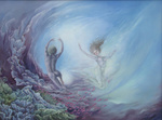2002Elkaar aanbiddend dansen twee geliefden in het hemelse water met elkaar, als voorspel van hun erop volgende versmelting. Van het origineel is een hoogwaardige Giclée te bestellen voor E600,-.