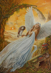 2004Arietta, godin van de muziek, een engel van licht en liefde. Vingervlug, virtuoos vinden haar handen de toetsen van haar vleugel. Alles wat haar muziek bereikt wordt in haar ban gezogen, vervoerd en betoverd. Van het origineel is een hoogwaardige Giclée te bestellen voor E700,-. [Grote dank aan meesterpianiste Marietta Petkova, wiens onovertroffen pianospel de inspiratiebron was. zie: links]