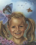 Mijn specialisatie is een z.g. 'psychisch portret', waarbij ik elementen toevoeg die bij de persoon passen. B.v. een portret van een geliefd dier, een landschap dat u in het bijzonder aanspreekt of verstrengeling met bloemen. Ook een door u 'gezien' visioen of droombeeld laat zich verbeelden.